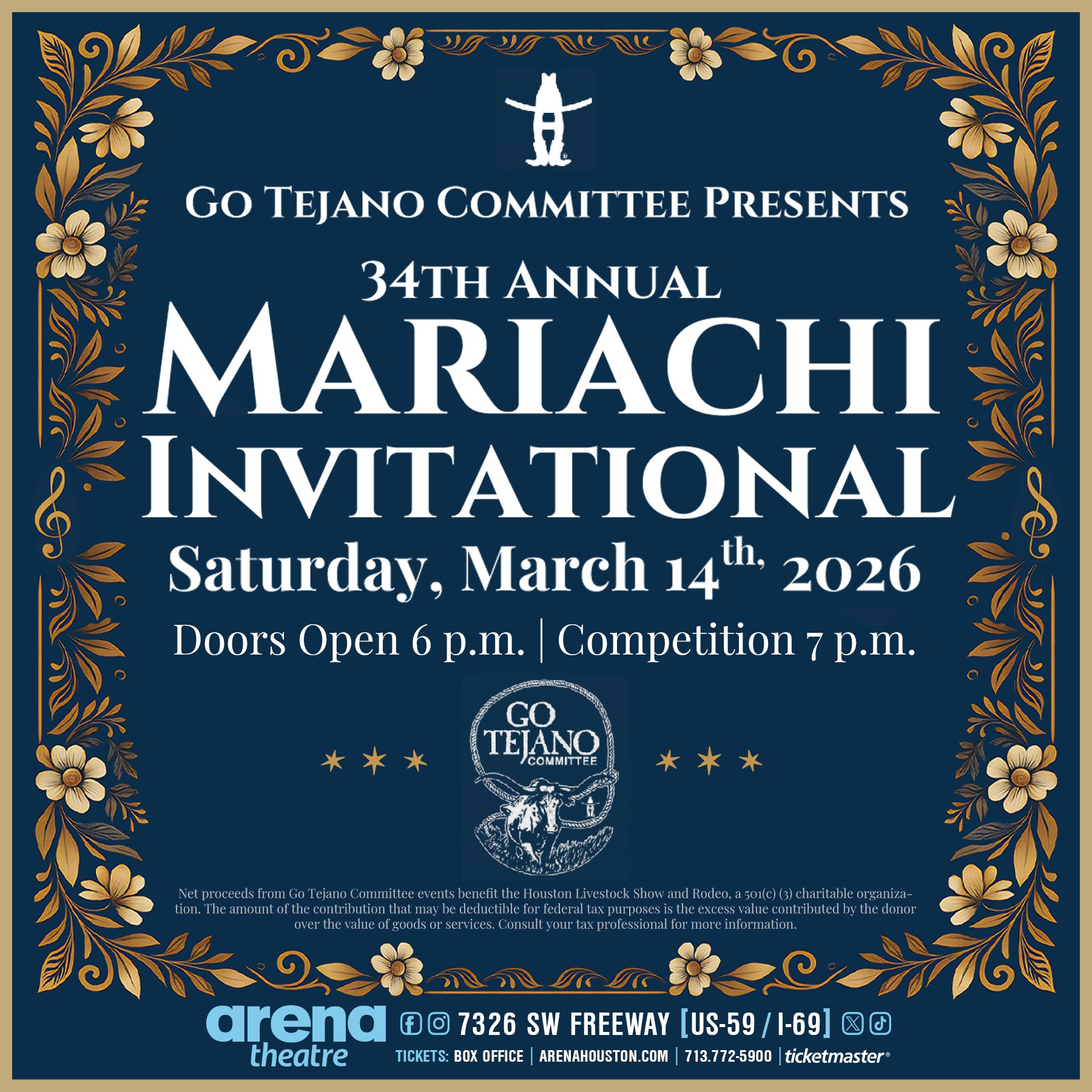 Houston, TX — The Houston Livestock Show and Rodeo™ Go Tejano Committee proudly announces the return of the 34th Annual Go Tejano Mariachi Invitational, a celebrated showcase of musical excellence, cultural heritage, and competition. The 2026 event will take place on Saturday, March 14, 2026, from 6:00 p.m. to 10:30 p.m., bringing together five of Texas’ top professional mariachi groups for an unforgettable evening of tradition and talent.