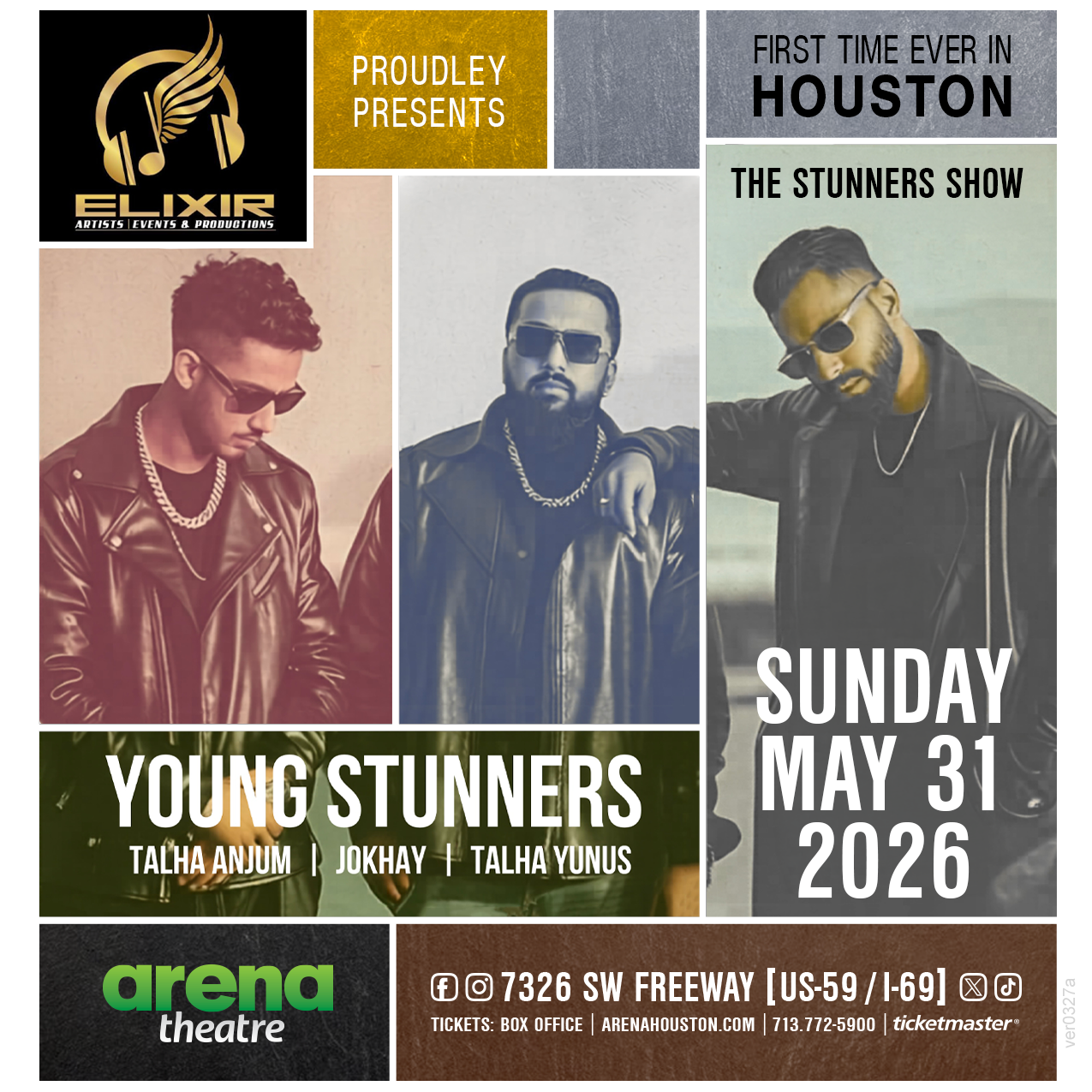 Houston, TX — One of the most influential acts in South Asian hip-hop is set to take over Houston. Young Stunners, the groundbreaking duo from Karachi featuring Talha Anjum and Talha Yunus, will headline an electrifying live concert at the Arena Theatre on Sunday, May 31, 2026, joined by acclaimed super producer Jokhay.