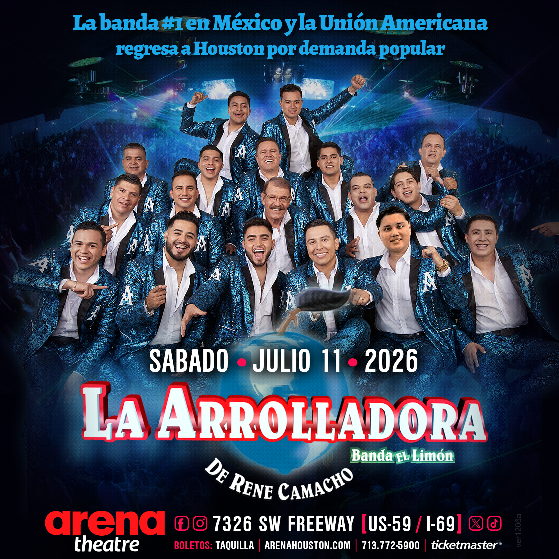 Houston, TX — La música que ha marcado generaciones regresa a Houston con una de las agrupaciones más queridas y exitosas de la banda sinaloense. La Arrolladora Banda El Limón de René Camacho se presentará el sábado 11 de julio de 2026 en el icónico Arena Theatre, en una noche que promete emociones intensas, romanticismo y fuerza inconfundible.